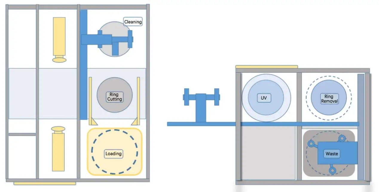 Ring Removal Section: Retrieves the ring following UV irradiation and transports it to the designated ring storage location.
